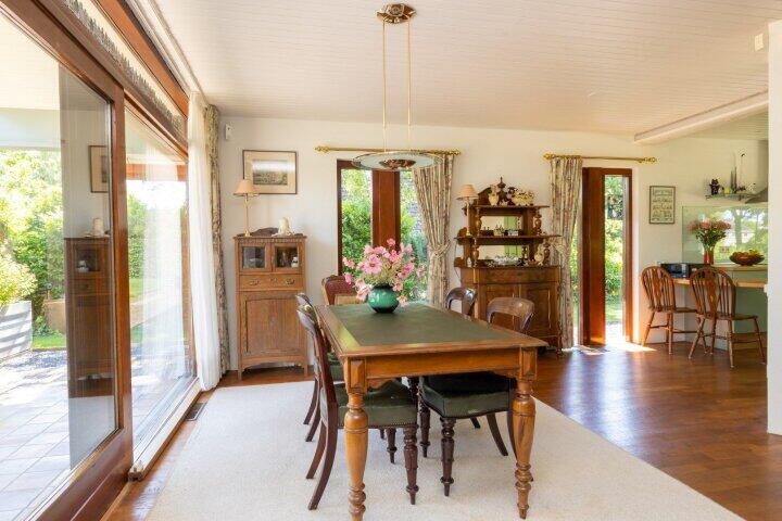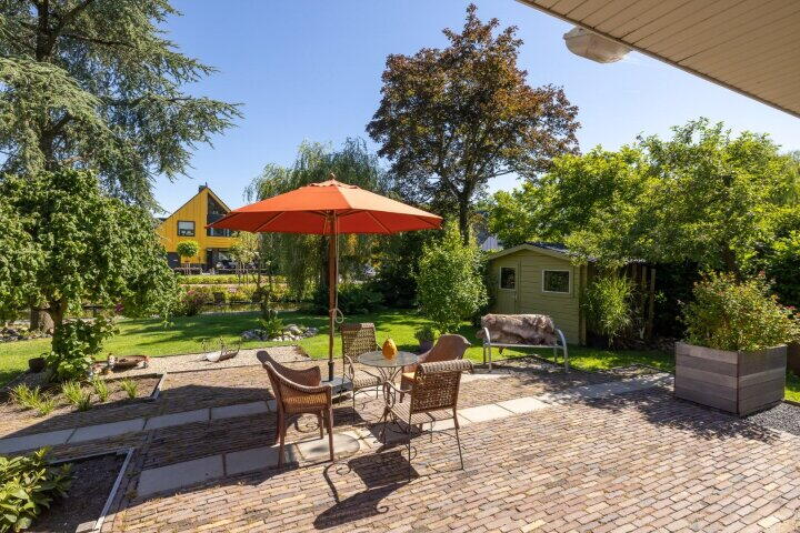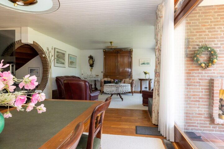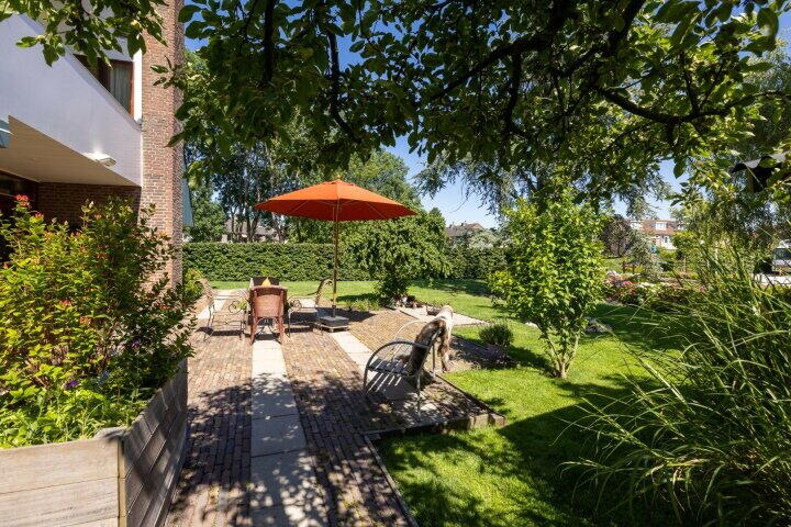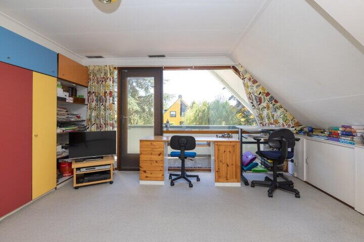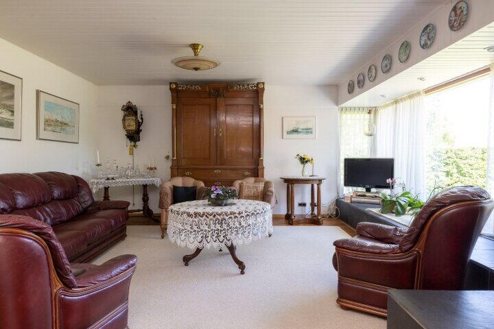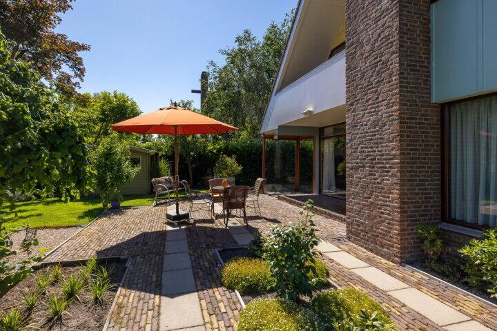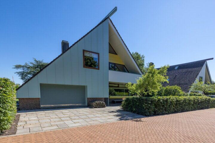 The property being offered at this prime location is a detached villa built in 1978 under architectural supervision, with 177 m2 of living space and a spacious attached garage (27.5 m2), which can also be converted into home office and/or practice space. The total floor area of the house and garage is even 240m2. The living space offers you a living and dining room with views over the fantastic garden, the living room has an open fireplace and a slightly sunken wine/cellars bar. The dining room adjoins the sheltered terrace with outdoor fireplace. The large open kitchen is located at the front of the property. On the spacious first floor there are 2 bathrooms, a separate toilet room and four bedrooms and a balcony on both the front and back side of the house. On the second floor you will find the new boiler and hot air heating system, an extra study room and plenty of storage space, another room is certainly possible here.